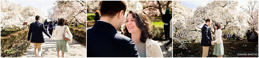 I loved how her outfit perfectly matched the color scheme of the garden and the freshly sprung cherry blossoms! The weather couldn’t have been better for this beautiful Brooklyn Botanic Garden Proposal.